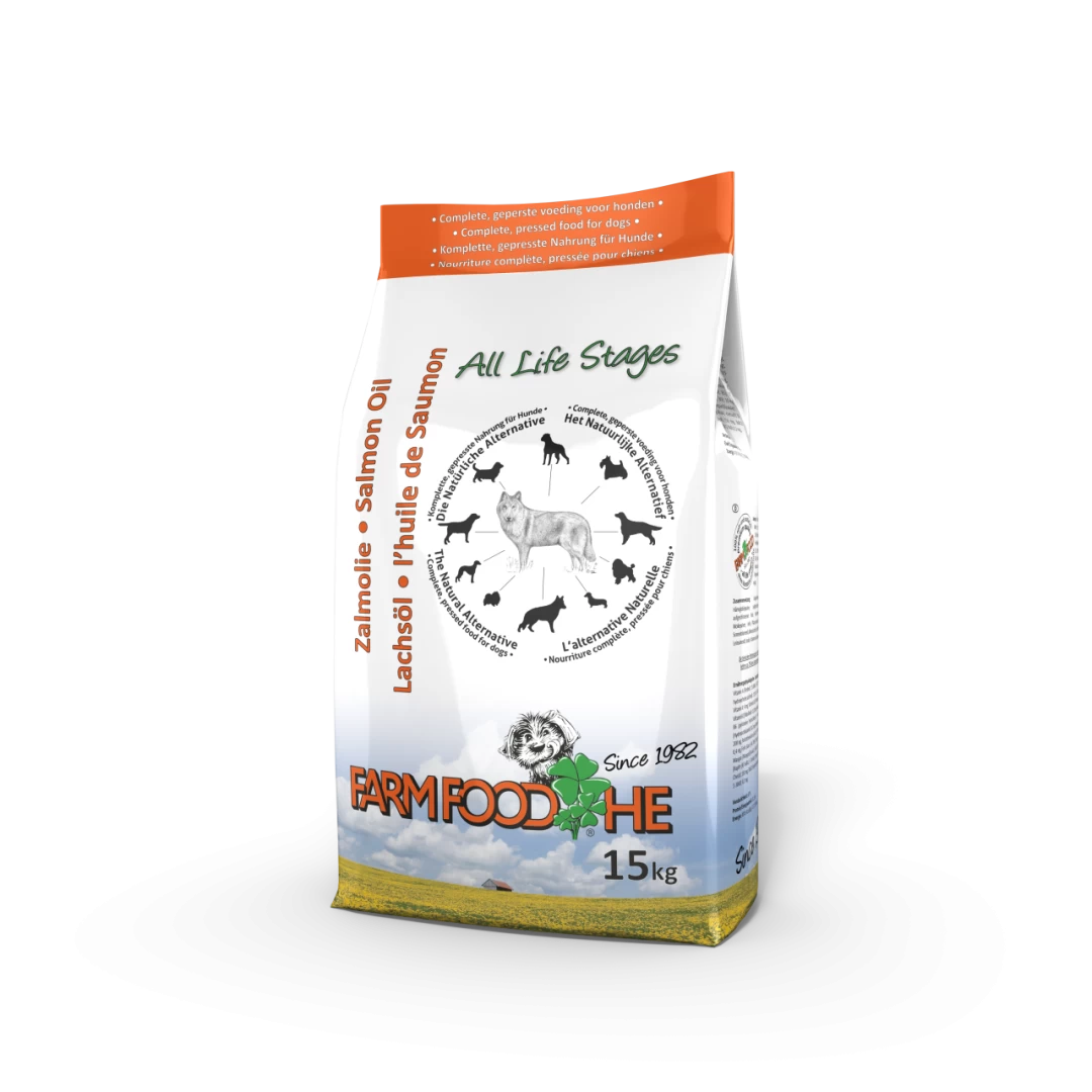 Farm Food hondenvoer HE Schotse Zalmolie is een zeer hoogwaardige geperste voeding voor elke hond, ongeacht leeftijd en/of prestaties of ras. Tijdens diverse testen is gebleken dat een deel van de honden nog meer baat heeft bij Farm Food HE wanneer de gebruikte lijnzaadolie wordt vervangen door Schotse zalmolie.